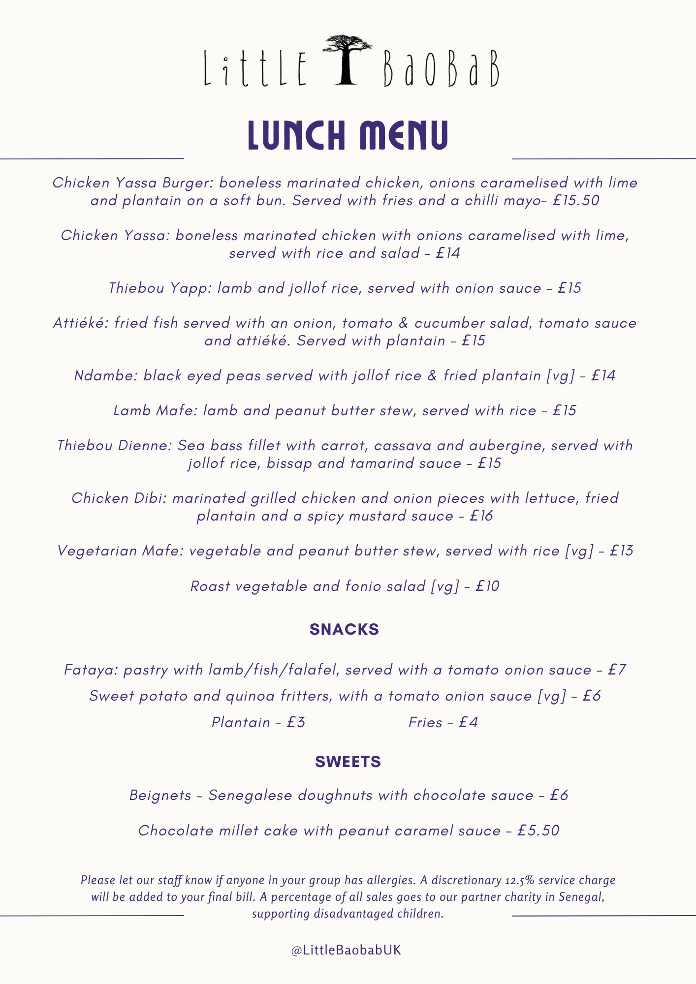 Senegalese food's new home in LondonLittle Baobab is London’s favourite Senegalese restaurant, bringing people together through sharing Senegalese food and culture with the spirit of Teranga.